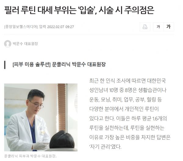 필러 루틴 대세 부위는 ‘입술’, 시술 시 주의점은